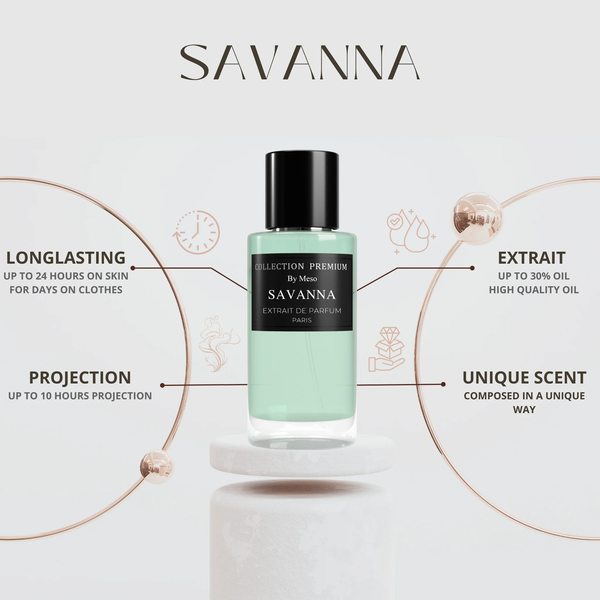 Savanna is an inviting and exotic fragrance that transports the senses to the vibrant atmosphere of African festivities. This perfume composition combines carefully selected floral and woody notes, creating a rich and compelling scent that leaves a lasting impression.